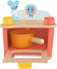 Une cuisinière compacte, équipée d’un four et d'une plaque de cuisson : l’enfant peut cuisiner de bons petits plats à l'aide de la casserole et de la grande cuillère en bois. Ne pas oublier d’assaisonner son plat avant de le servir avec la salière souris.