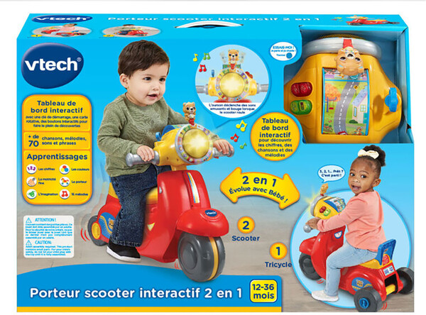 Les petits voyageurs en quête de grandes aventures peuvent désormais rouler et rouler pendant la récréation! Cette moto se transforme d'un tricycle à trois roues en un scooter surpuissant à mesure que les petits conducteurs développent leur coordination et leur confiance en eux. Où devons-nous aller? Tournez la clé de contact pour ajouter des sons de moteur excitants, puis partez pour des voyages motorisés. Explorez les lieux sur la carte à rouleaux, tournez l'anneau extérieur des phares et utilisez les boutons du tableau de bord pour ajouter des phrases sur la circulation et la sécurité routière, pour que le voyage soit aussi agréable que la destination! À chaque tour de roue, la trottinette encourage le développement du langage à travers les chiffres, les couleurs, les chansons et les phrases de conduite, tout en contribuant à développer l'imagination et la motricité de votre enfant. Conçu pour les enfants de 12 à 36 mois. Poids maximum de 42 livres. Nécessite 2 piles AA. Les piles sont incluses à des fins de démonstration uniquement. Des piles neuves sont recommandées pour une utilisation régulière.